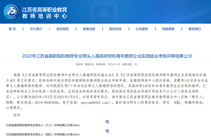 近日,经过前期申报、江苏省高职师培中心组织审核,2022年江苏省高职院校教师专业带头人高端研修和青年教师企业实践结业考核评审结果出炉。澳洲10手机版参评三人均顺利通过考核,其中健康学院东方参评项目获评专业带头人高端研修优秀项目。本次江苏省共有142项专业带头人高端研修项目参与评选,共评出11项专业带头人高端研修优秀项目,东方获评优秀项目同时也是澳洲10手机版该类项目首次获评省级优秀。