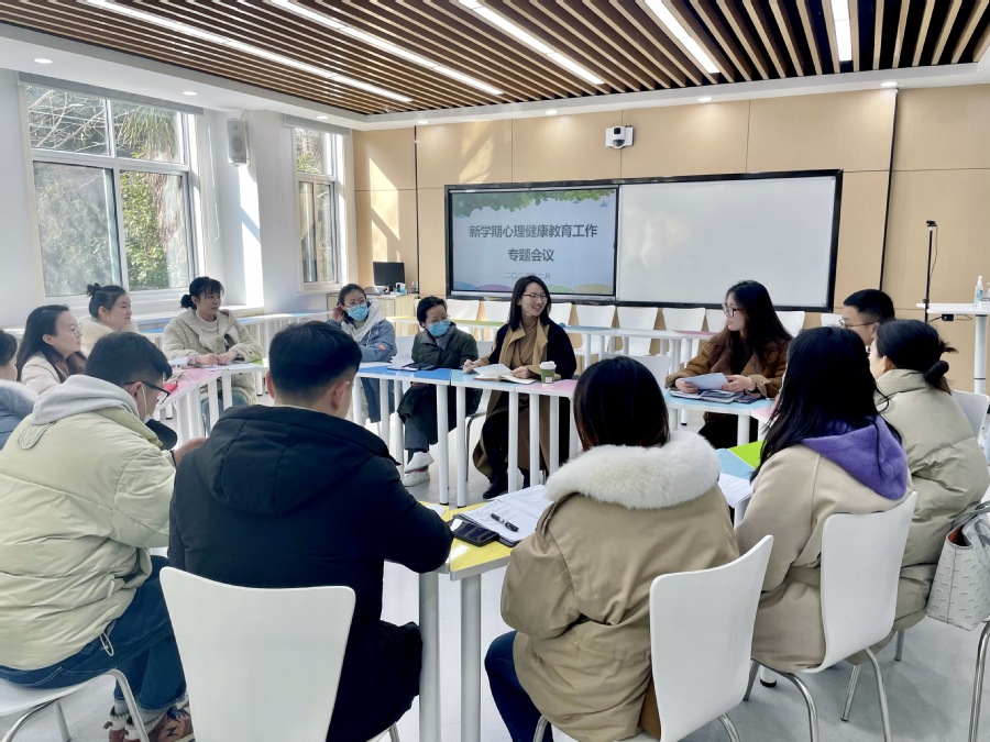 为扎实做好心理健康教育工作,2月23日上午,心理发展服务中心在中心团体辅导室召开新学期心理健康教育工作会议,会议由中心主任李婉君主持。