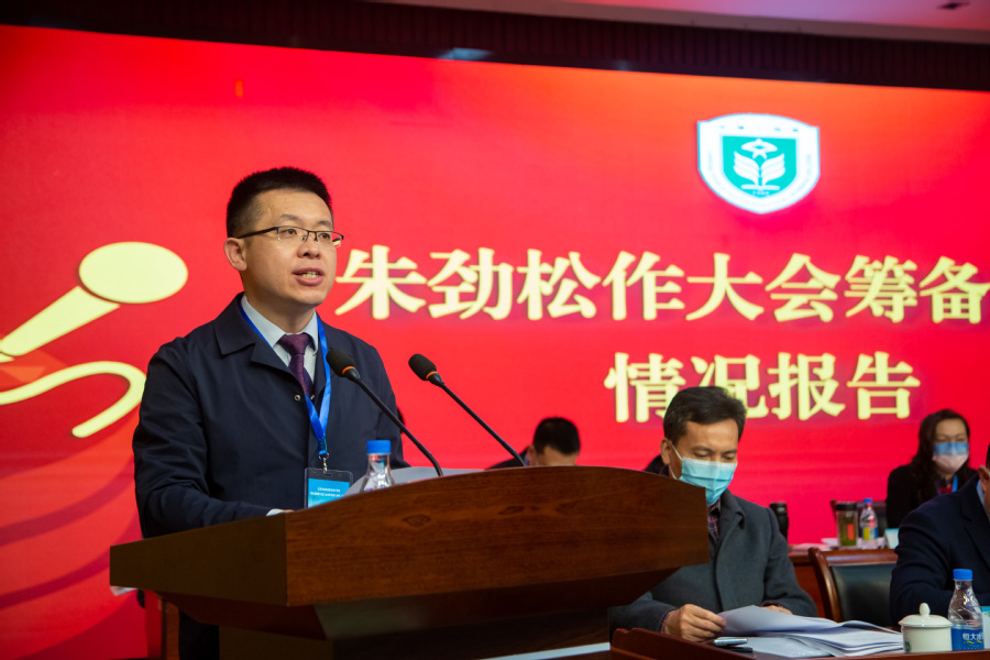 ▲工会主席朱劲松作《工会工作报告》