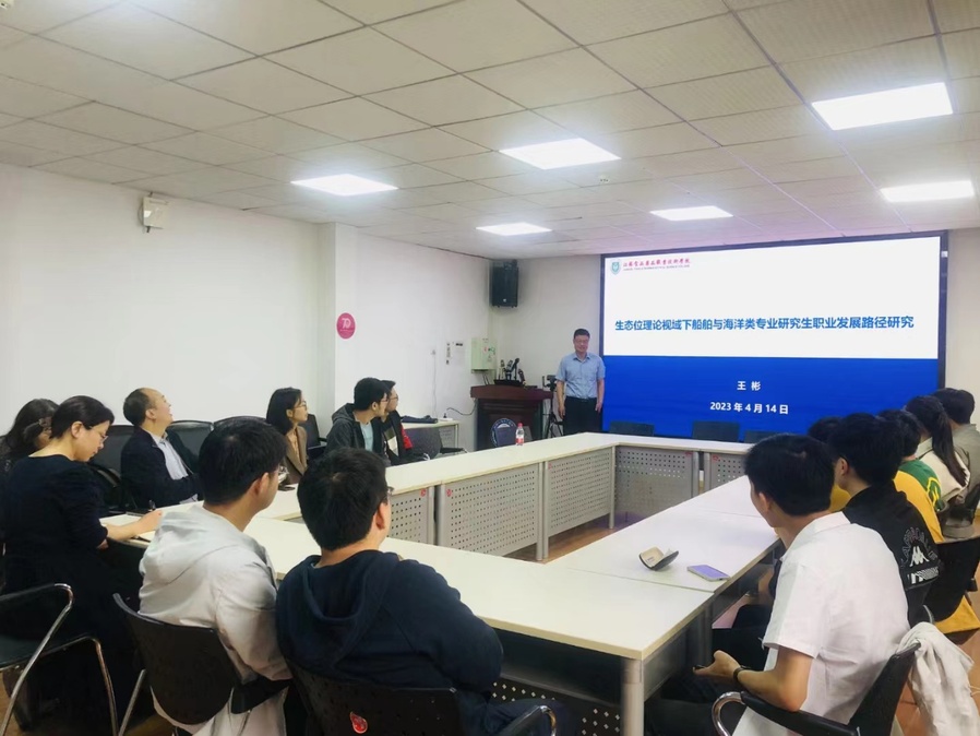 4月14日上午,王彬教授为华中科技大学船舶与海洋工程学院刘敬喜教授课题组硕士和博士们作了题为《生态位理论视域下船舶与海洋类专业研究生职业发展路径研究》的学术报告。