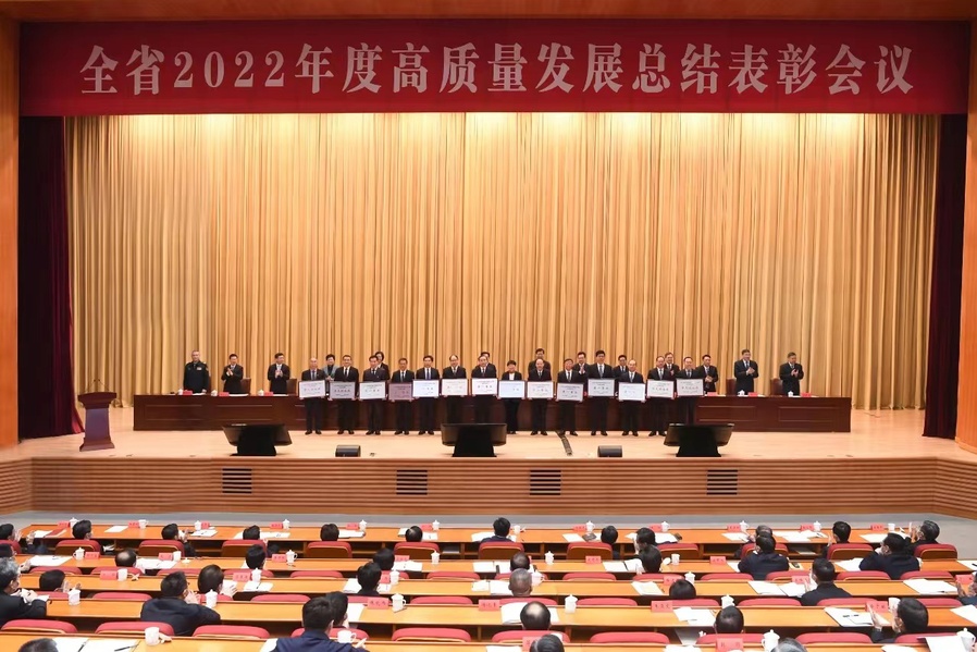 4月26日,省委、省政府召开全省2022年度高质量发展总结表彰会议。会议通报了2022年度高质量发展综合考核结果,省委书记信长星,省委副书记、省长许昆林等省委常委为先进单位颁发了奖牌。根据考核结果,澳洲10手机版荣获省属高校综合考核争先进位奖,党委书记陶书中代表学校接受了颁奖。