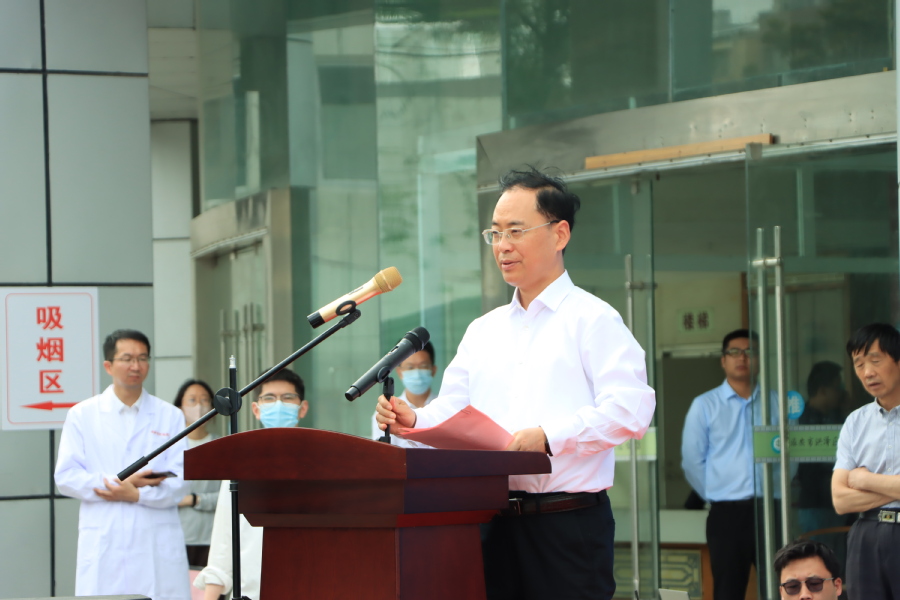 查友海代表全院干部职工向参加揭牌仪式的各位领导、各位来宾表示热烈的欢迎,他介绍了医院发展历史、建设成就、职工概况、医疗设施投入等情况,表示将以附属医院的揭牌为契机,利用好学校的优质资源,进一步规范管理、创新机制,加强双师型人才梯队建设和培养,认真落实完成学校的各项医学教育任务。