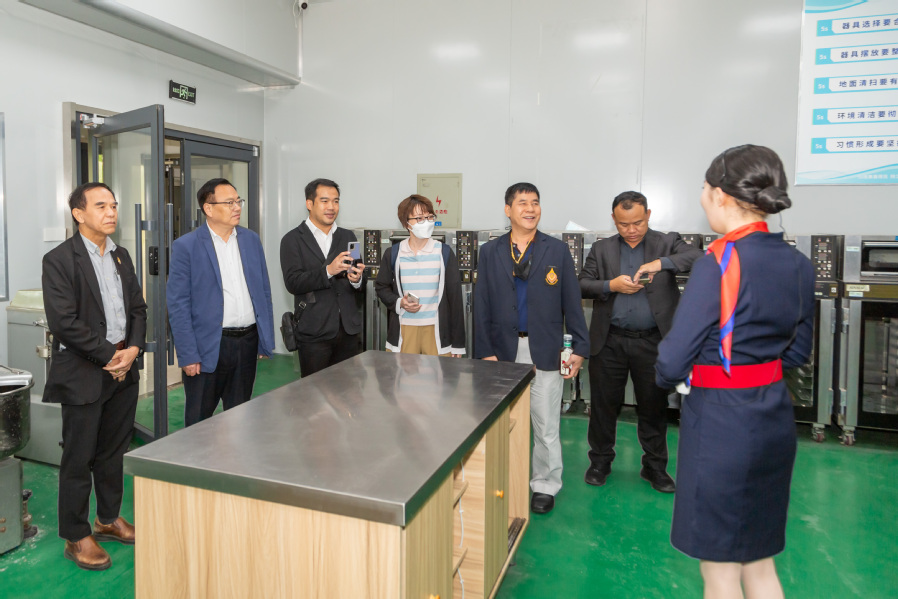 张建华对泰国兰纳皇家理工大学客人来访表示欢迎,并带领皮西特-维蒙塔纳西一行参观了学校烘焙车间、啤酒车间、黄酒车间、白酒车间、中医康复技术产教融合基地、学业支持中心等地。让嘉宾充分感受学校的办学特色与文化特色。