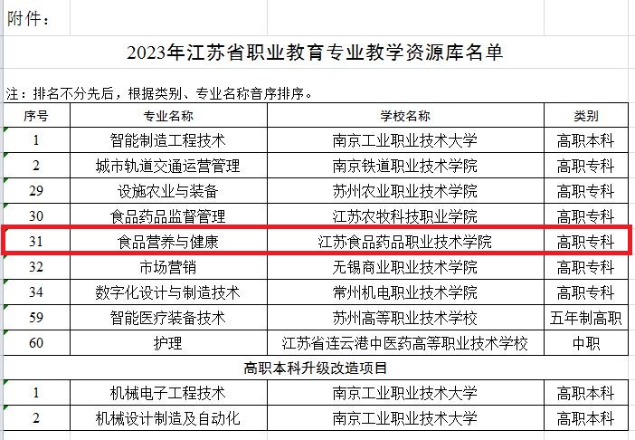 近日,据《省教育厅关于公布2023年江苏省职业教育专业教学资源库名单的通知》(苏教职函〔2023〕27号)获悉,澳洲10手机版“食品营养与健康”专业入选江苏省职业教育专业教学资源库建设项目。该项目,经学校申报、专家评审、结果公示和省教育厅专题办公会审议,共确定60个。