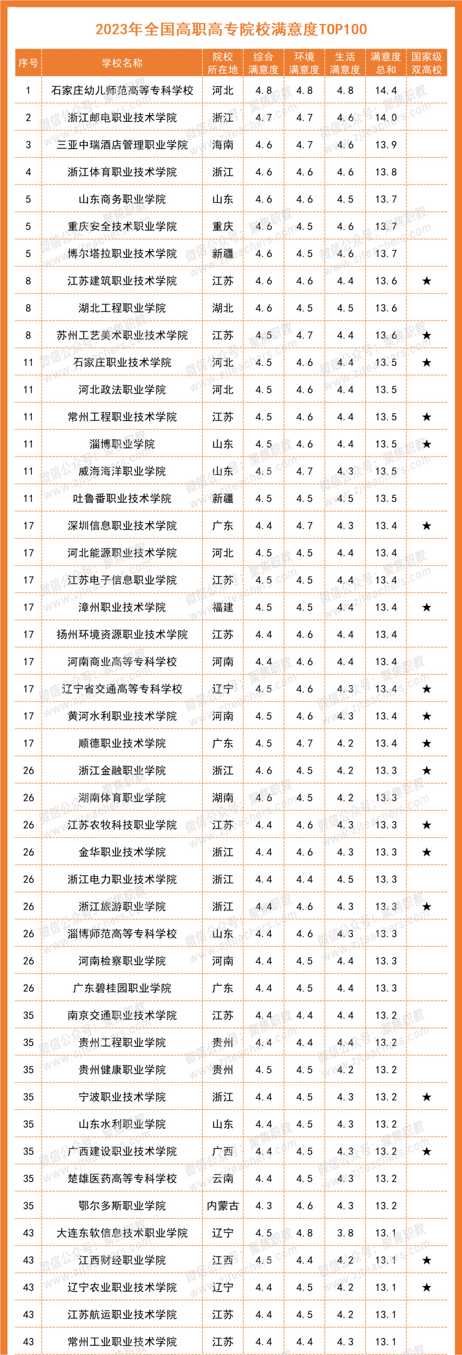 2023全国高职高专院校满意度排行榜TOP100出炉,澳洲10手机版榜上有名