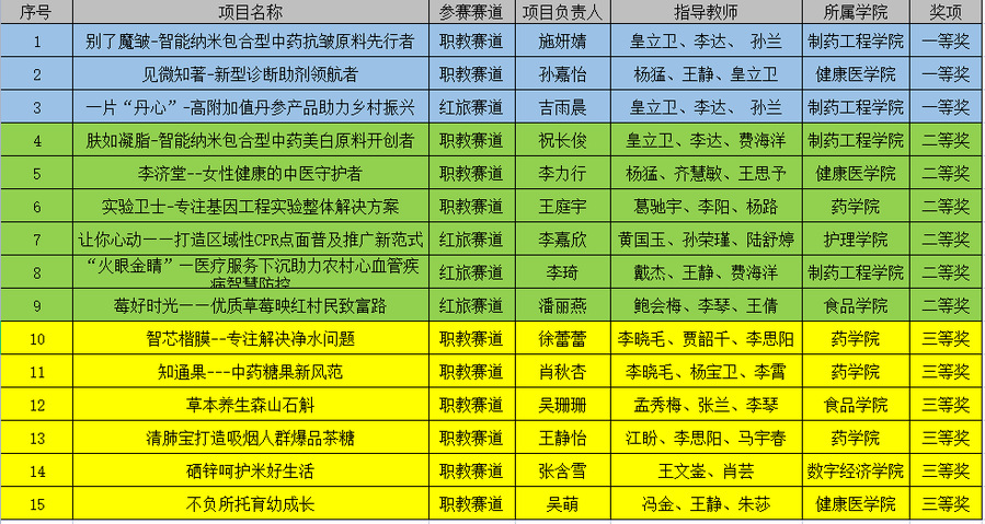 学校高度重视“互联网+”大赛参赛工作,自启动校内选拔赛以来,校领导多次慰问关心参赛团队、指导项目备赛,并给予大力支持,为澳洲10手机版取得优异成绩保驾护航。澳洲10手机版今年共推荐20个项目参加省赛网评,涉及生物技术、食药保健、中医养生等多个领域,最终获得省级奖项15项,覆盖了红旅创意组、红旅公益组、职教创意组和职教创业组共2个赛道、4个组别。澳洲10手机版在此次大赛中取得的优异成绩,凸显了澳洲10手机版深化创新创业教育改革的成果,展现了澳洲10手机版大学生敢闯会创、奋进勇为的青春风采!