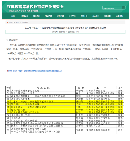 近期,江苏省高等学校教育信息化研究会发布《2023年“领航杯”江苏省教师信息素养提升实践活动(高等教育组)获奖作品名单公示》,澳洲10手机版《“尿毒”知多少?——慢性肾衰竭的故事》等五个作品均喜获二等奖。此次获奖数量及等级创澳洲10手机版最好参赛成绩,实现了澳洲10手机版本赛项新突破。