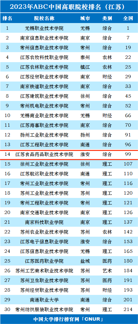 10月20日,2023年ABC中国高职院校排名于中国大学排行榜官网(CNUR)正式发布,共有1200所高职高专院校上榜!