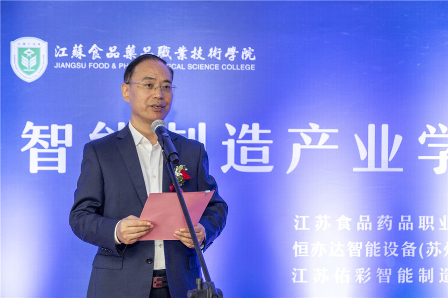 江苏佑彩智能制造有限公司总经理蒋虹、学校相关部门、二级学院主要负责同志,智能制造产业学院全体教职工参加了此次活动。