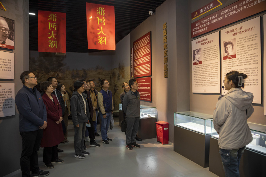 11月9日,基层党务干部走进涟水成集镇“苏北小延安”,步入园区,大家在高大的抗战胜利纪念碑前久久伫立,深切缅怀为了抗战胜利而牺牲的革命烈士。沿路向前,广场上雄伟的红星雕塑映入眼帘,激励着大家听党话、跟党走、感党恩。