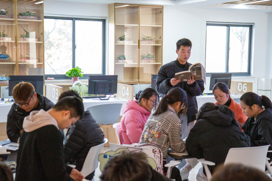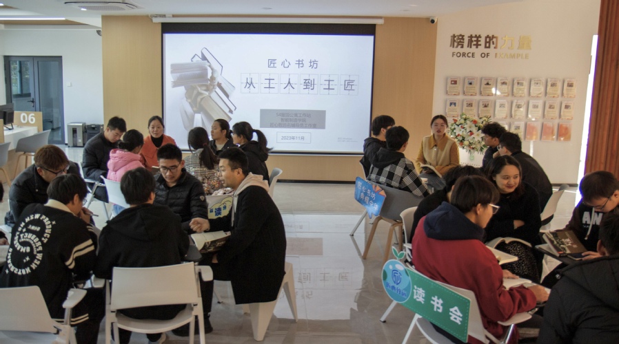 为增强学生对于“匠心”的理解与认识,辅导员老师以小组讨论等形式带大家研读书籍《从工人到工匠》。读书会上,老师们通过方文墨等大国工匠的故事给同学们立标杆,利用书中的七条路径为他们指明方向。