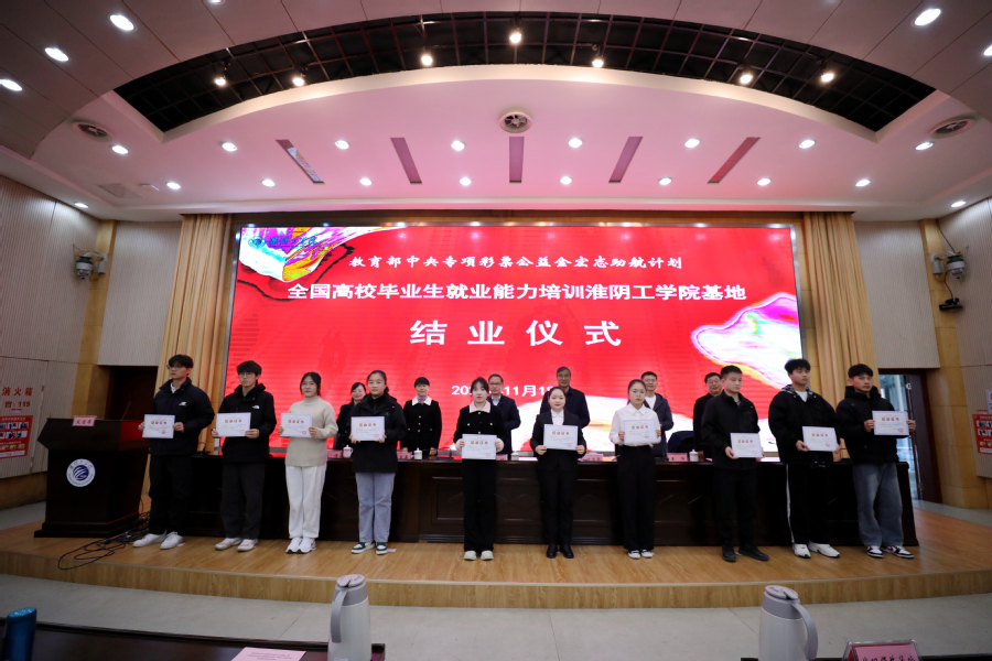 11月18日,2023年“宏志助航计划”全国毕业生就业能力培训项目第六期培训结业仪式在淮阴工学院培训基地成功举办,澳洲10手机版学工处处长李金霞出席活动,培训教师代表吴晓平作交流发言。澳洲10手机版67名2025届毕业生完成培训,顺利结业。