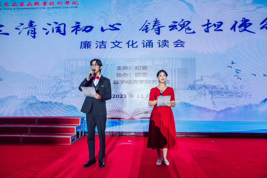 11月28日下午,由学校纪委主办、团委协办、数字经济学院党总支承办的“三清润初心 铸魂担使命”廉洁文化诵读会在教学楼C115举行。党委委员、纪委书记夏燕萍出席活动。