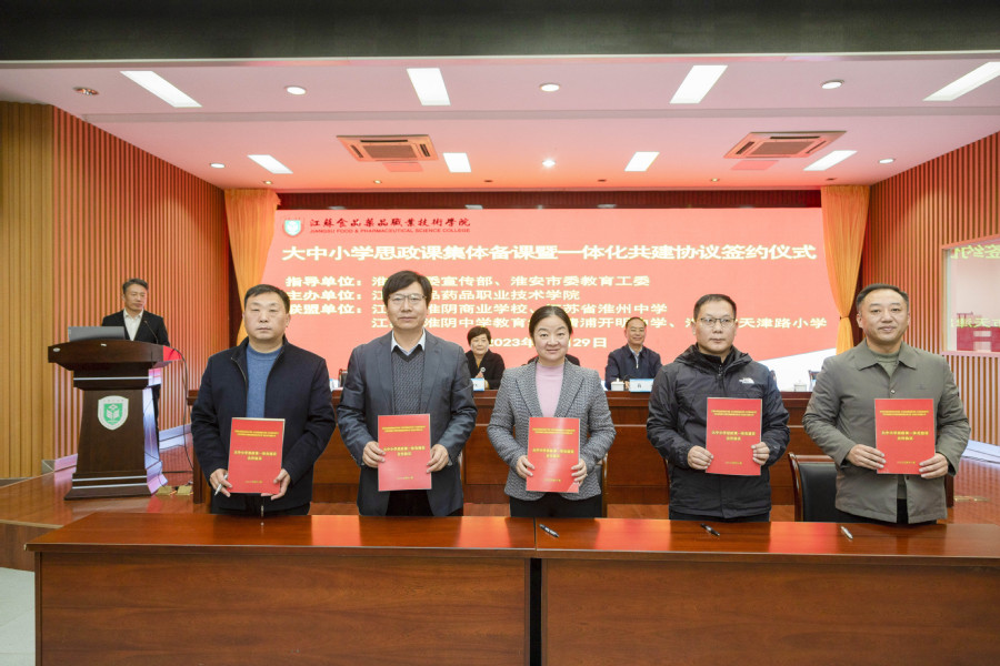 11月29日下午,澳洲10手机版与江苏省淮阴商业学校、江苏省淮州中学、江苏省淮阴中学教育集团清浦开明中学、淮安市天津路小学隆重举行“大中小学思政课集体备课暨一体化建设合作签约仪式”。