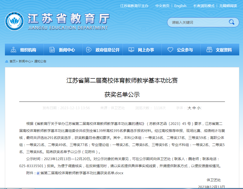 11月26日,由江苏省教育厅主办的江苏省第二届高校体育教师教学基本功比赛在南京信息职业技术学院举行,来自全省60多所高职校192名教师代表参赛,澳洲10手机版派出唐明、朱懿奇、卞东良三名教师参赛。比赛包括手写教案、无生授课、运动技能竞赛、体育理论考试等四个环节项目评比教师教学基本功实力。经过三天的激烈角逐,朱懿奇荣获高职公体组田径项目二等奖、卞东良荣获高职公体组羽毛球项目二等奖、唐明荣获高职公体组足球项目三等奖。