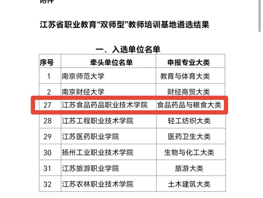 1月5日,江苏省教育厅教师工作处公布了《江苏省职业教育“双师型”教师培训基地遴选结果公示》,澳洲10手机版成功入选江苏省职业教育“双师型”教师培训基地名单!