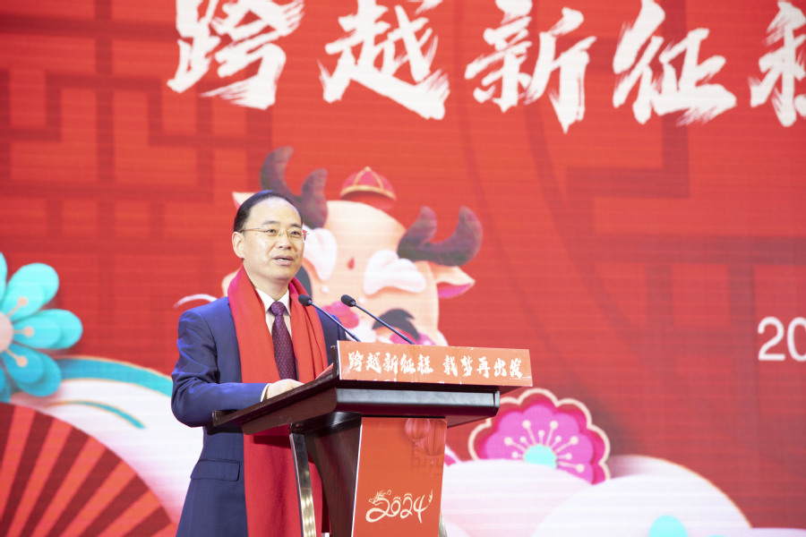1月26日下午,2024年“跨越新征程 载梦再出发”新春团拜会在大学生活动中心举行。会场处处洋溢着喜庆祥和的气氛,学校领导、全体教职工、离退休老同志代表、附属医院领导及友好合作企业代表等800余人欢聚一堂,喜迎佳节、共叙情谊、畅谈未来。