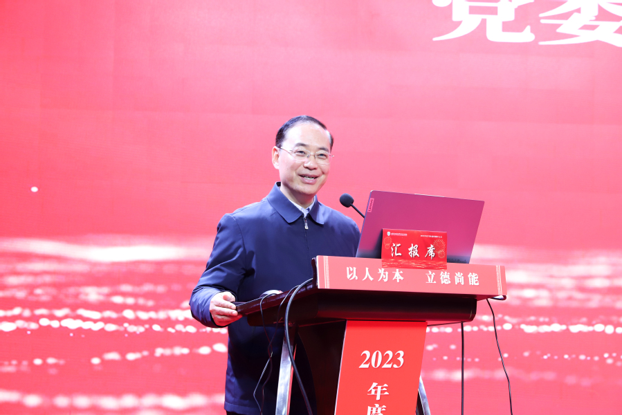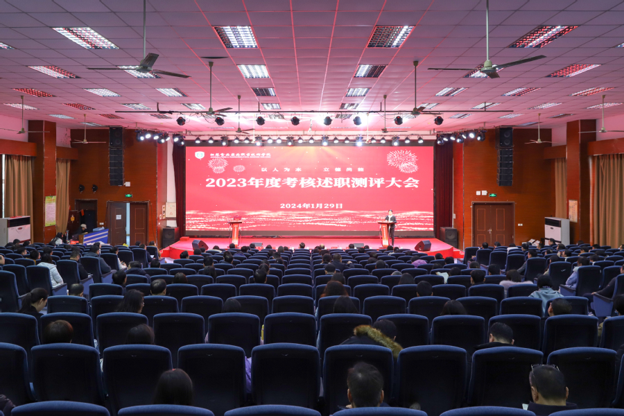 为全面总结2023年度工作、分析查找不足、科学谋划2024年事业发展,1月29日下午,学校在C115召开2023年度考核述职测评大会。全体领导班子成员、副科级及以上干部、民主党派代表、教授代表、博士团代表、辅导员代表参加了大会。