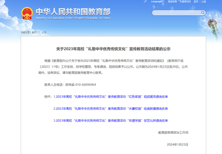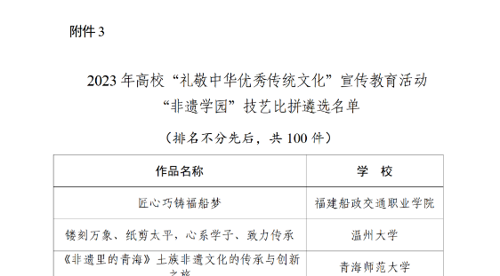 教育部近日公示2023年高校“礼敬中华优秀传统文化”宣传教育活动结果,澳洲10手机版报送的《瓷刻经典,筑遗琢心》(“非遗学园”技艺比拼视频)入选遴选名单。
