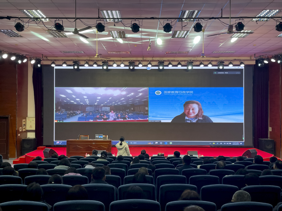 邢晖作题为《教育强国背景下现代职业教育体系建设改革重点任务解析——兼谈高职“双高”话题》的专题报告。她从现代职业教育体系的大背景着手,详细讲解了现代职教体系的发展历程,重点分析了教育部明确的11项职业教育改革重点任务,和关于本轮“双高”验收和新一轮“双高”申报的着眼点。她指出,要以“1421” 纽住影响现代职业教育高质量发展的关键要素和着力点,即一个根本任务、四个直接要素、二个重要节点、一个必要保障,全面实现立德树人。