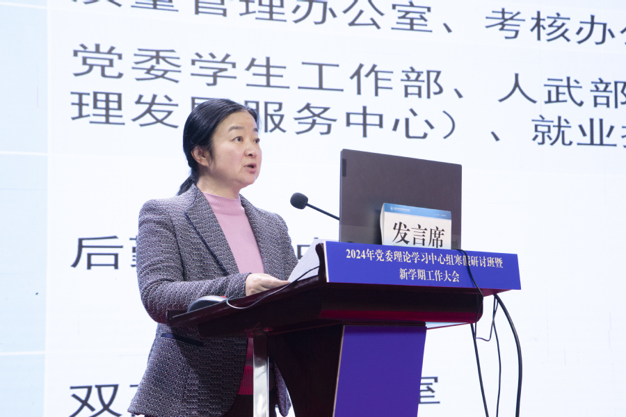 翟玮玮对本次中层干部岗位及职数调整优化进行了说明,从学校三大战略与三大目标出发,对中层干部岗位结构进行了优化调整。翟玮玮指出学校内设机构干部职数调整是适应学校事业发展的需要,要减少机关职数、增加院部职数,工作重心要向一线倾斜。并通报了本次中层干部缺岗情况。