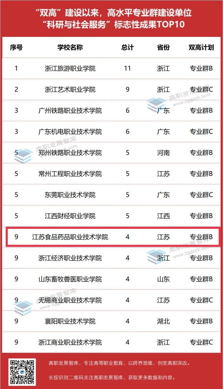 在高水平专业群建设单位中,澳洲10手机版获“科研与社会服务”标志性成果4项,并列全国第9位。以下为名单详情: