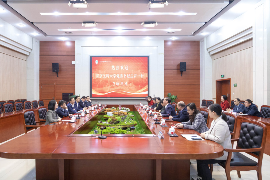 4月2日上午,南京医科大学党委书记兰青一行莅临澳洲10手机版考察调研,淮安市副市长王向红陪同考察,澳洲10手机版党委书记薛宇、校长翟玮玮、副书记安进、副校长贾韶千参加了接待。