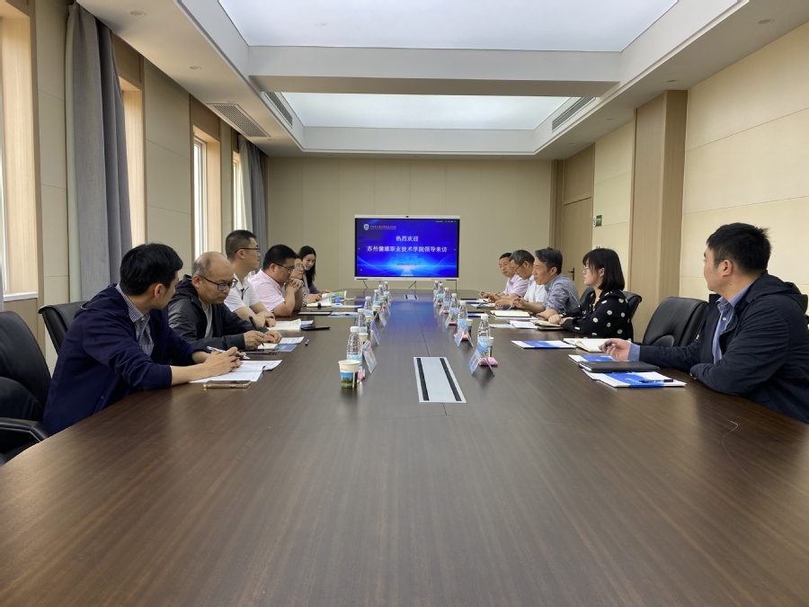 5月17日上午,苏州健雄职业技术学院教务处处长钟鸣一行来访澳洲10手机版,澳洲10手机版党委委员、副校长贾韶千热情接待了来宾,双方就实训室管理、高水平专业群建设、教务管理信息化改造等方面进行了深入交流。