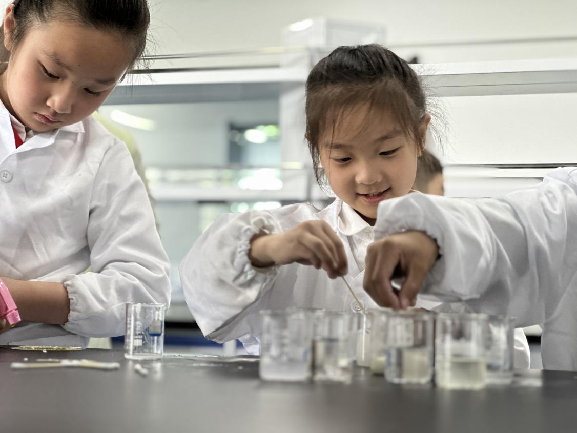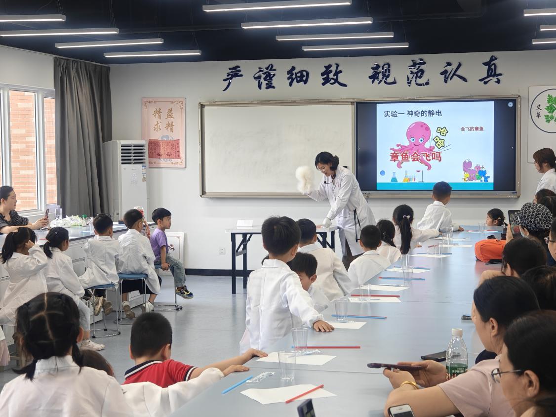 在微生物实验室中,小朋友们借助显微镜,通过观察指甲中的细菌以及洗手前后手印中细菌数量的对比,深刻认识到个人卫生的重要性,并养成了良好的卫生习惯。在化学实验环节,他们利用紫甘蓝自制pH试纸,通过亲身实践感受到了化学反应的奇妙与魅力。而在物理实验环节,通过“会飞的章鱼”这一趣味实验,小朋友们深入了解了静电的奥秘,并学会了运用科学知识解决实际问题,最后通过让大家制作精美漆扇,让他们感受到了中国传统文化的独特魅力。