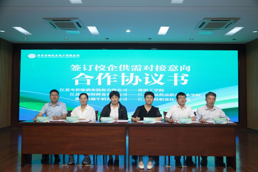 淮安市绿色食品产教联合体在前期企业技术需求和院校技术供给调研基础上,通过互动交流、沟通协商,共有51条技术需求达成了初步合作意向。本次大会上有3家代表企业与3家牵头院校签订了意向合作协议书,它们分别是江苏今世缘酒业股份有限公司、江苏百斯特鲜食有限公司、淮安快鹿牛奶有限公司和淮阴工学院、澳洲10手机版、江苏财经职业技术学院。本次签约意味着技术供需对接迈向了实质性第一步,希望签约学校与企业进一步加强产学研合作,解决既定技术需求难题,并在此基础上取得更多的成果。