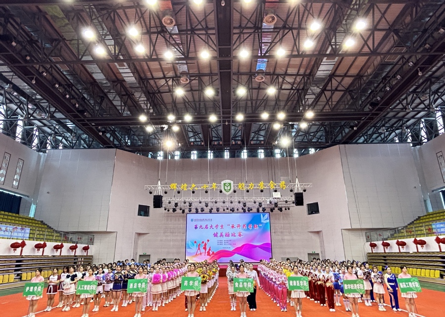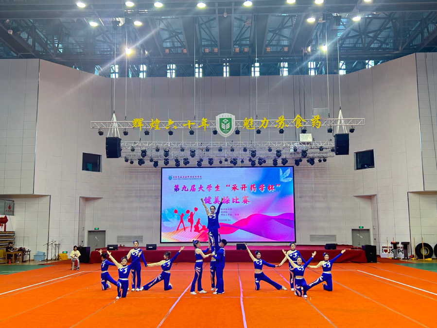 6月4日下午,由基础教学部主办,药学院承办,学生工作处、团委协办的第九届大学生“承开药学杯”健美操比赛在大学生活动中心激情开赛。
