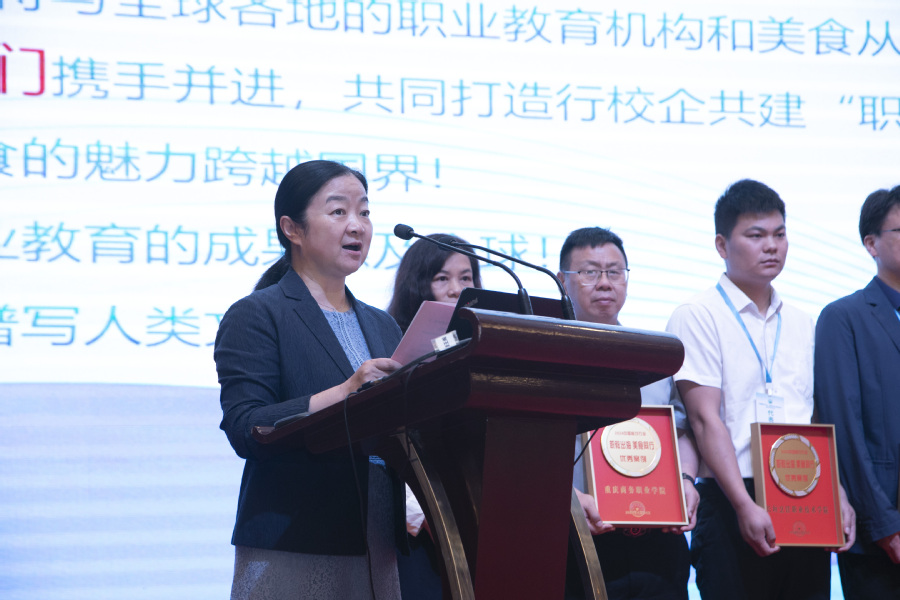 翟玮玮校长宣读中国餐饮行业“职教出海 美食同行”淮安共识