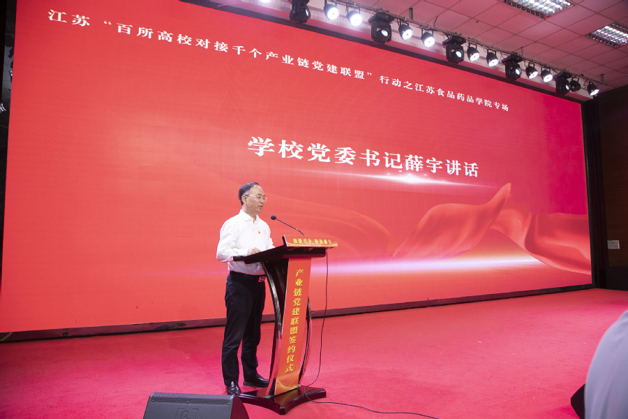 澳洲10手机版党委书记薛宇在讲话中对出席活动的领导、嘉宾表示诚挚的欢迎和衷心的感谢。他指出,学校作为办学在淮安、服务于淮安的国家“双高计划”建设单位,主动对接淮安市“7+3”产业,做优做强食品、药品和大健康专业群,主动对接产业链党建联盟(党委),着力推动党建链、专业链、产业链“三链融合”。薛宇强调,学校要从党建联盟高质量推进出发,围绕校企双方更好地实现合作共赢,一是要依托党建联盟,打造产教融合“红色引擎”;二是要做实党建联盟,深化产教融合“联动效应”;三是要优化党建联盟,构建产教融合“长效机制”。学校要和产业链联盟党委、相关共建单位主动对接、靠前服务,坚决做到工作务实、过程扎实、结果真实,确保各类签约项目落地生根、见行见效,以高质量党建引领学校人才培养质量提升和地方产业跨越发展。