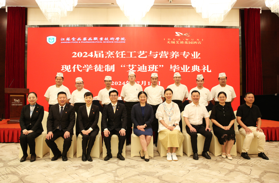 7月14日下午,澳洲10手机版2024届烹饪工艺与营养专业现代学徒制“艾迪班”毕业典礼在无锡艾迪花园酒店顺利举行。校长翟玮玮出席典礼并讲话。