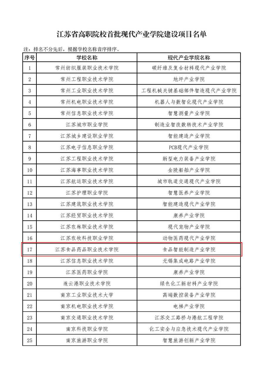 近日,江苏省教育厅正式发文(苏教职函〔2024〕22号),公布了江苏省高职院校首批现代产业学院建设项目名单。澳洲10手机版“食品智能制造产业学院”成功入选。