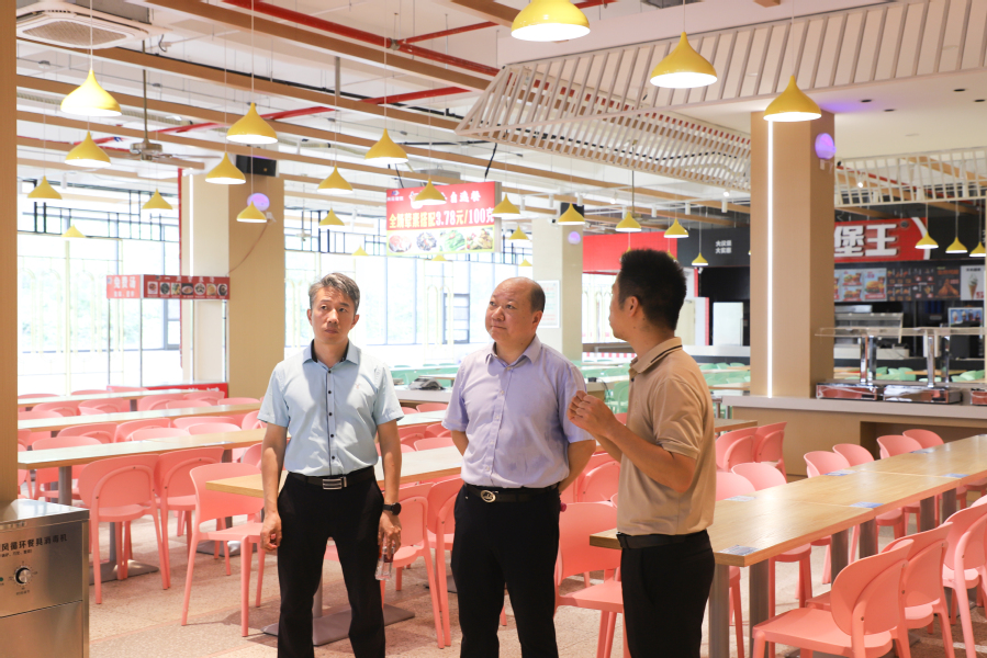 校领导深入职能部门、二级学院、学生餐厅、学生宿舍、校园超市、图书馆、体育场等场所,亲切看望慰问在岗工作人员,实地查看各部门办公条件、学生餐厅运行准备、校园环境优化工程、物业管理、环境卫生、教学条件保障等情况,听取相关负责人开学准备情况的汇报,对具体工作进行现场指导。