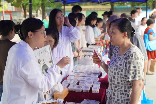 活动现场人头攒动,气氛热烈。淮安市药品监管、检验、监测、生产、经营、使用、高校等单位设立12个专业咨询台,组织开展贵重药材展示、假劣药品鉴别咨询、疾病模型展示、合理健康饮食搭配指导、家庭药箱配置、儿童用药指导、老年用药指导等咨询服务,老师们和执业药师们以饱满的热情和专业的知识,耐心解答群众的各种疑问,并针对不同病情提出了科学合理的用药方案与建议。药学院“安全用药”科普团队的老师们深入浅出地普及了合理用药的常识和健康知识,强调了健康生活习惯的重要性,呼吁大家在日常生活中注重药物使用的科学性和合理性。现场还设置了药品趣味投掷游戏及药品安全知识有奖问答等互动环节,让居民们轻松愉快的学习识别药物滥用的技巧和合理用药的知识。