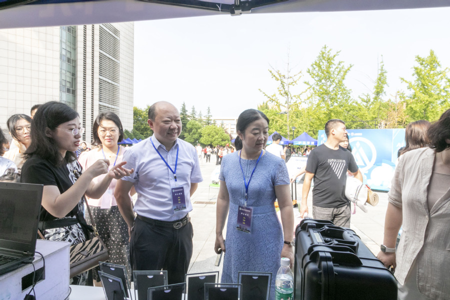 初秋的江苏食院校园喜气“迎”人,“新”意满满,智控飞鹰、机器人、现场直播、特色打卡点、签到墙、抽奖......处处洋溢着喜庆热烈的氛围。