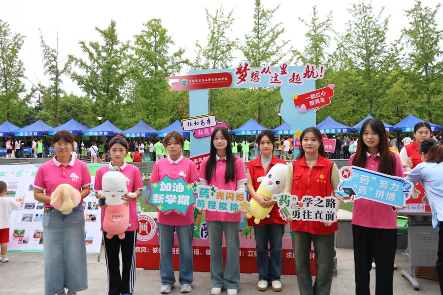 药学院设立专属打卡区并通过抽奖形式发放中药玩偶、中药钥匙扣等定制文创产品。“关馨妮”成长加油站,准备了开学季加油大礼包助力新生大学生活。