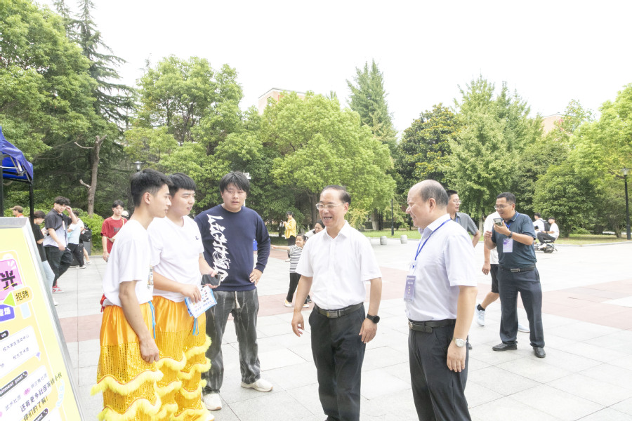 9月7日上午,党委书记薛宇、校长翟玮玮、党委副书记安进来到迎新现场,详细了解报到实时进展情况,与报到新生、家长亲切交谈,慰问参加迎新工作的师生员工及迎新志愿者们。