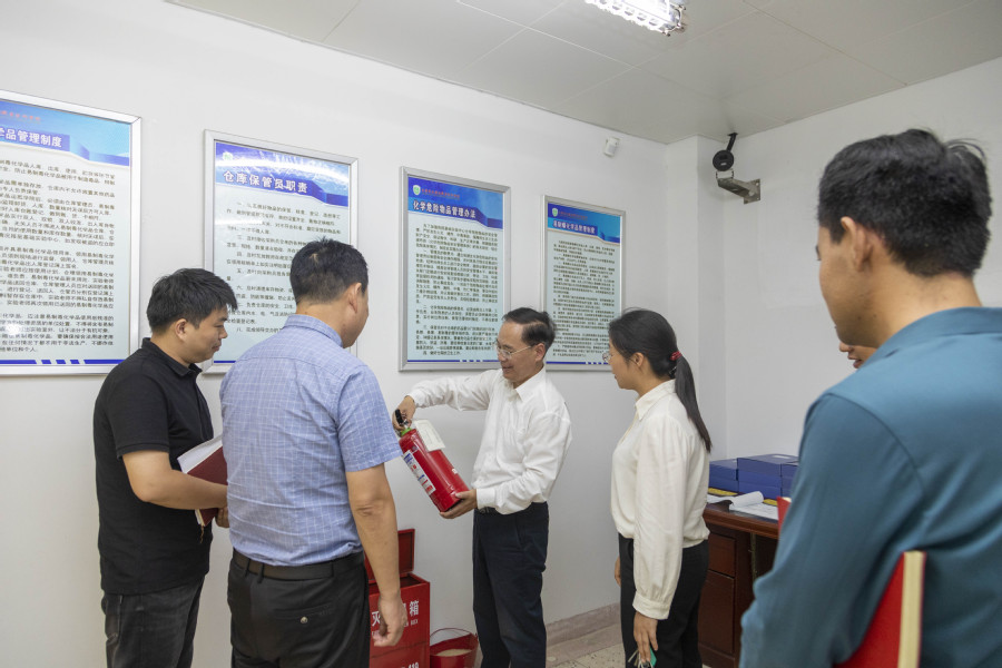 检查组一行先后对即将奠基开工的产教融合大楼工地、危化品仓库、食堂、学生公寓、浴室和超市等重点部位进行了检查。在各个检查现场,薛宇先后听取了有关部门负责人的情况汇报,并和部分师生员工进行了交流。在检查过程中,每到一处薛宇均会针对容易发生安全隐患的点位提出了指导意见。