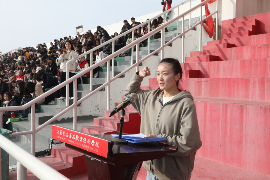 徐静樨老师代表全体裁判员宣誓,健康医学院中医242班唐凯鹏同学代表全体运动员宣誓,来自摩洛哥国际电商231班苏礼代表留学生进行发言。