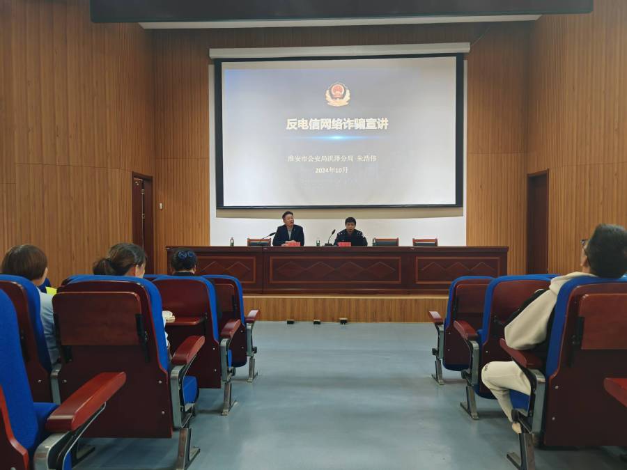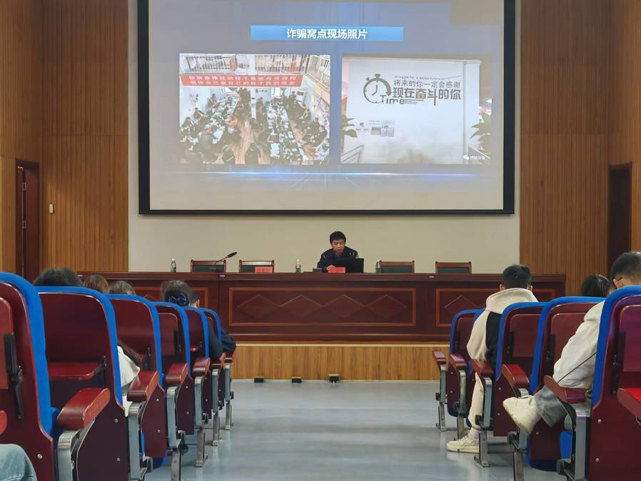 为提高大学生的防电信诈骗意识,保障学生的财产安全,10月31日下午,洪泽湖产业学院邀请淮安市公安局洪泽分局朱浩伟警官来校开设“校园防诈宣传”讲座。讲座由洪泽湖产业学院副书记、副院长张春凯主持。产业学院近百余名学生和物业管理人员代表参加了本次讲座。