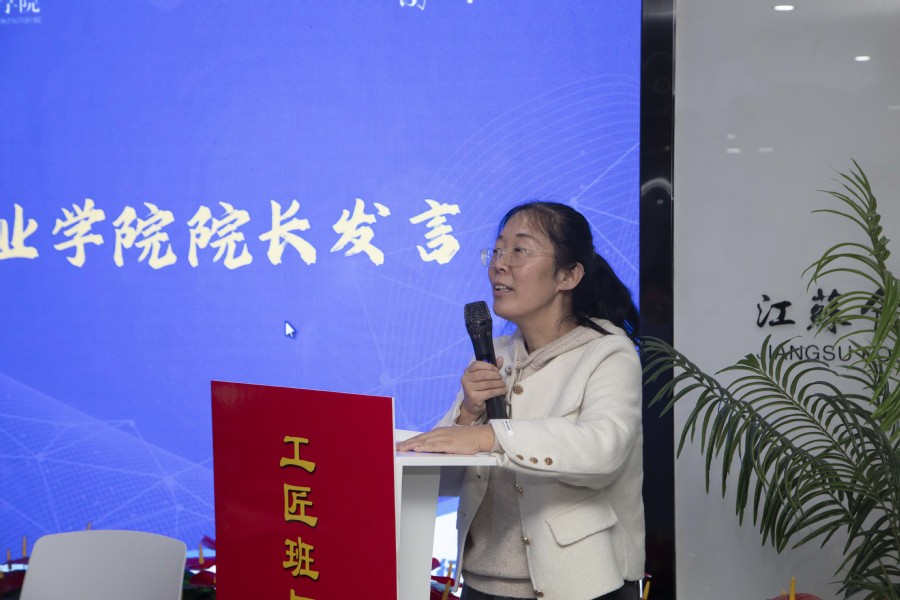 江苏佑彩智能制造有限公司总经理蒋虹致辞,技能人才队伍是支撑中国制造、中国创造的重要力量,立足岗位,勤学成才,公司不遗余力为学员提供专业师资、先进设备和丰厚资源,坚持问题导向,把培训学习的知识融入到工作实践中,培养学员成为高素质技能人才的“领头羊”。
