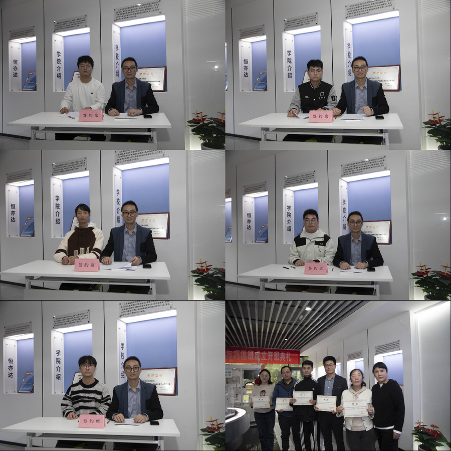 在校企双方人员的共同见证下,企业与2022级的3名学员签订了就业实习协议,与2023级的2名学员签订了顶岗实习协议,并为职业“双师”团五位中、高级培训讲师颁发聘书。