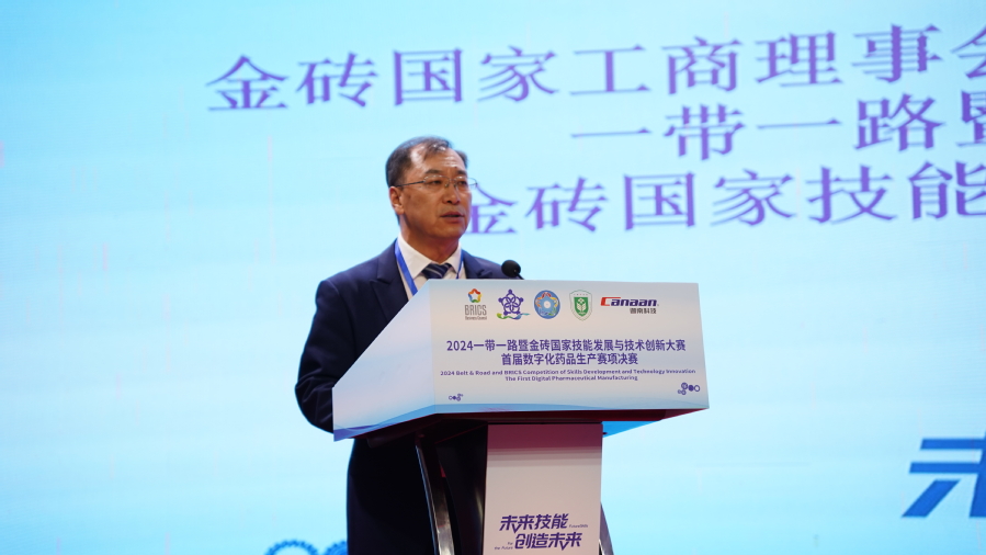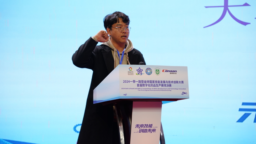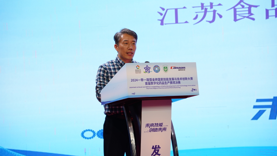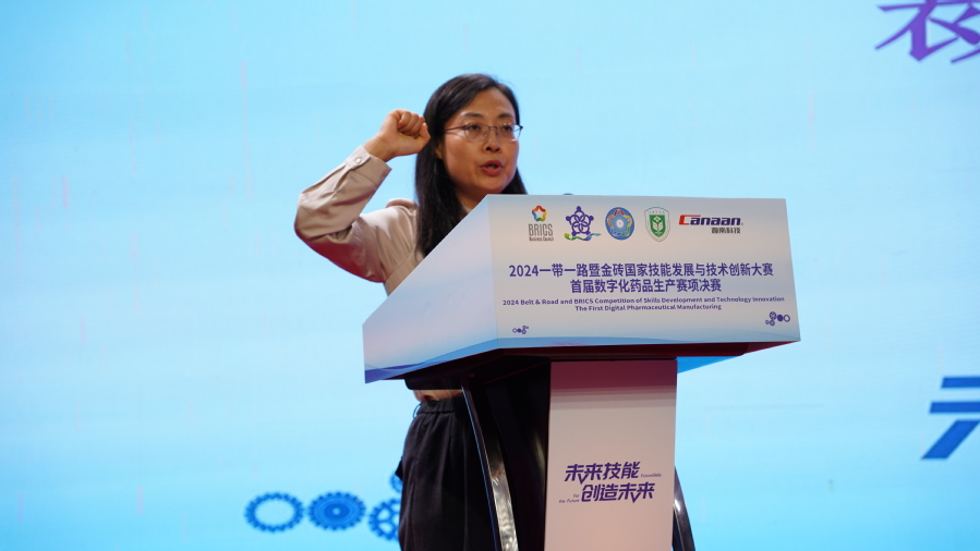 贾韶千宣布2024一带一路暨金砖国家技能发展与技术创新大赛首届数字化药品生产决赛正式开赛。让我们共同期待这场技能与创新的盛宴,期待参赛选手们的精彩表现!