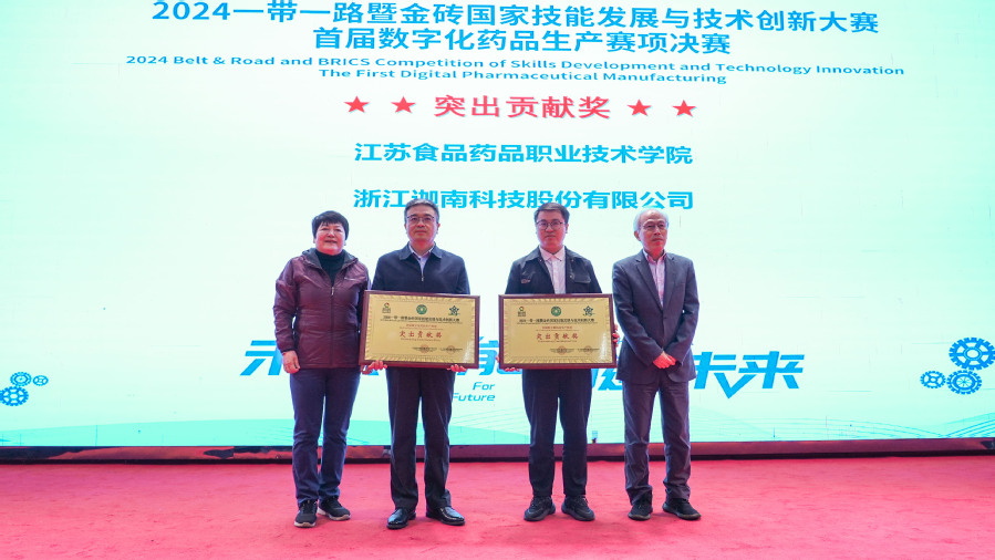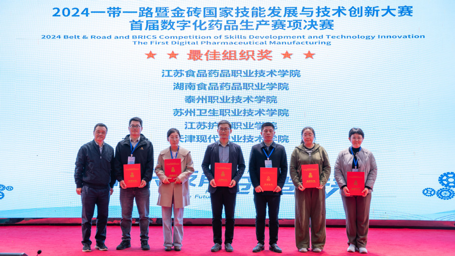 近日,备受瞩目的2024年金砖国家技能发展与技术创新大赛药品生产赛项决赛圆满落幕。在这场汇聚了顶尖药品生产技能人才的盛会上,澳洲10手机版作为承办院校荣获最佳组织奖和突出贡献奖,澳洲10手机版制药工程学院温冰冰、蔡佳凭借出色的表现,成功斩获一等奖;制药工程学院黄巧燕、戴杰两位老师荣获优秀指导教师奖。