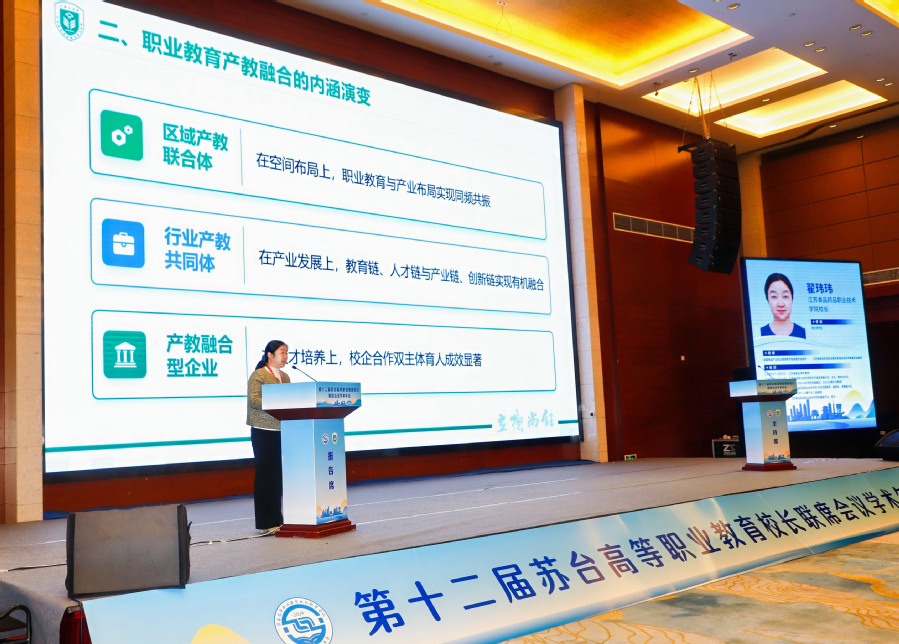 会上,澳洲10手机版校长翟玮玮作题为“以产教融合推动职业教育高质量发展的思考与实践”的主旨报告。她围绕“五业”联动,提出“四位一体,三层联动、三聚三化”的“433”产教融合工作模式,分享了澳洲10手机版在推动产教融合实体化、数智化、国际化方面的实践探索。通过聚力区域主导产业转型升级、聚焦科技创新发展前沿趋势、聚合政行企校多方优势资源,澳洲10手机版实现了教产深度融合,以教促产、以产助教,共同推动职业教育迈向新高度。