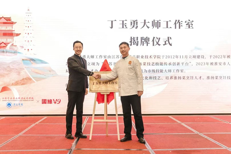 淮安美食节开幕式上,酒店总经理虞伟与酒店学院院长沈子杨共同为在国际青年会议酒店建立的“实践教学基地”揭牌,并在企业设立了丁玉勇大师工作室,为校企合作书写了新的一页。