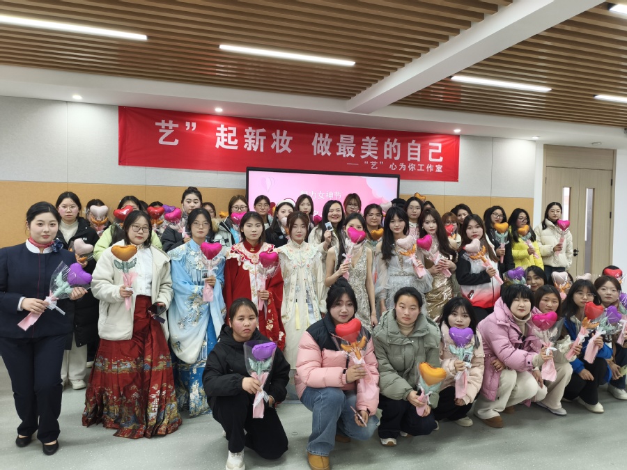 “艺”心为你工作室在S4文史驿站举办“‘艺’起新妆,做最美的自己”主题活动。活动现场,高铁专业女生化身美妆达人,讲解展示日常妆、职业妆实用技巧。妆后,百变换装体验让女生们风格各异,纷纷拍照打卡。活动中还为女生们送上花朵气球和拍立得照片。(吉桂娴)